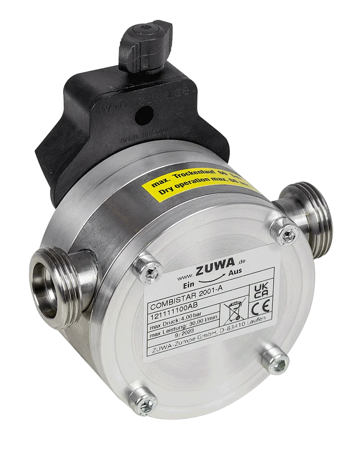 The ZUWA impeller pumps in the NIROSTAR series can also be operated with DC motors. Our quick-change pump carrier system is used for this purpose.