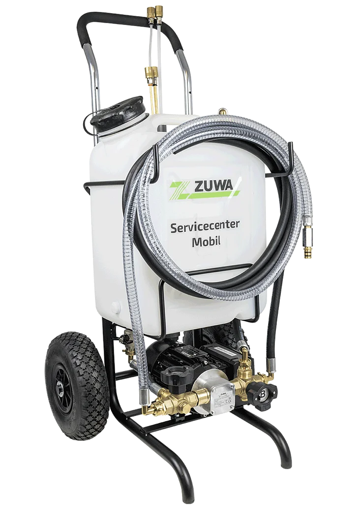 Solaranlagen spülen, mit Wärmeträgermedien füllen und entlüften in einem Arbeitsgang. Die neuesten Versionen der ZUWA-Solarfüllstationen zum Spülen und Befüllen solarthermischer Anlagen sind klein, leicht zu transportieren und passen aufrecht in den Kofferraum eines PKW.
