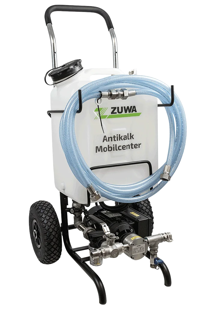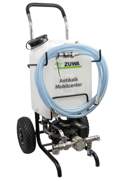 Das Antikalk Mobilcenter ist ein Entkalkungsgerät für den SHK-Profi zum Spülen von Warmwasserspeichern und Wärmetauschern mit Entkalkungsmitteln. Säureresistente Bauteile machen das Antikalk Mobilcenter zur ersten Wahl bei der Arbeit mit aggressiven säurehaltigen Entkalkungsmitteln.