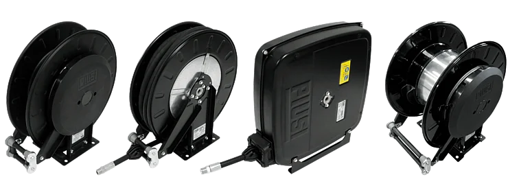 Schlauchhaspeln, dienen dazu, Schläuche kompakt und sauber aufzubewahren, ordentlich zu führen, aufzuwickeln und schnell bereitzustellen.